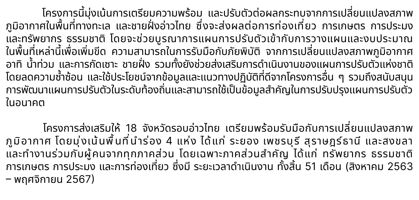 โครงการการสร้างภูมิคุ้มกันต่อผลกระทบจากการเปลี่ยนแปลงสภาพภูมิอากาศ ในพื้นที่ทางทะเลและชายฝั่งตามแนวอ่าวไทย (Increasing resilience to climate change Impacts in marine and coastal areas along the Gulf of Thailand)
